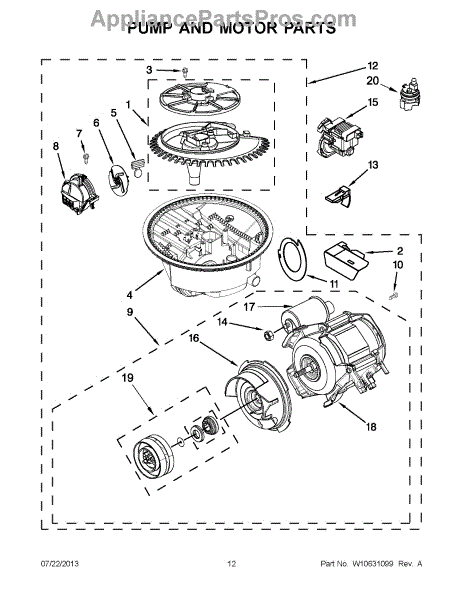 The Pump and Motor Assembly is an OEM part for Whirlpool dishwashers. This part is responsible for circulating water during the wash cycle and draining water at the end of the cycle.