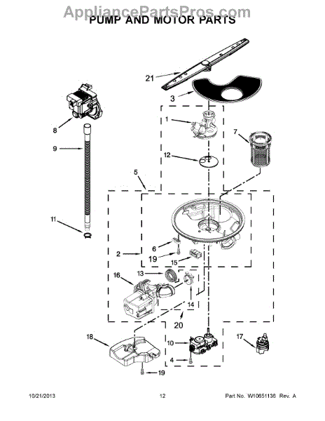 You should replace this pump and motor assembly if it becomes defective or worn out. Causes of a bad pump and motor assembly can include regular wear and tear, blockages from food particles or debris, and damage from hard water deposits. A malfunctioning assembly can lead to poor water circulation, affecting the dishwasher's cleaning performance.