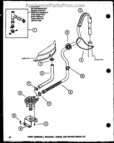 Parts for Amana LW2503G/P1118411WG: Pump Assembly (Lw3403w / P1118419ww) (Lw3403g / P1118420wg) (Lw3403l / P1118421wl) Parts