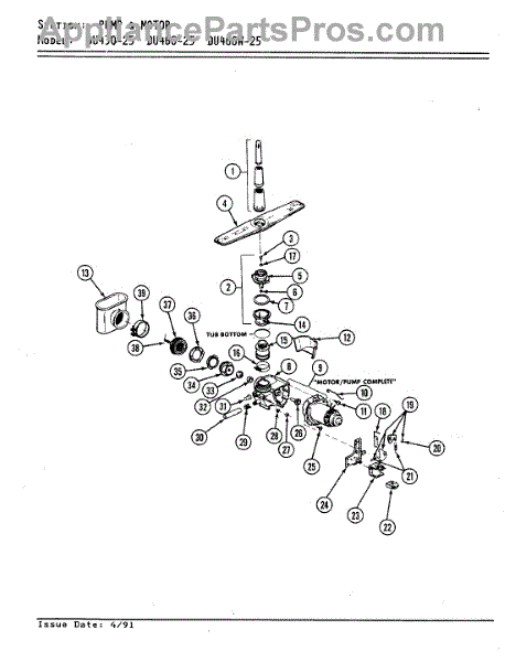 Parts for Jenn-Air DU430-25: 02 - Pump Assembly Parts