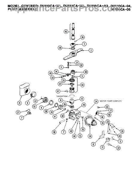 Parts for Magic Chef DU110CA-02: 03 - Pump Assembly Parts