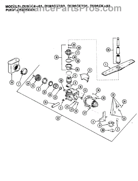 Parts for Magic Chef DU85CA-01: 02 - Pump Assembly Parts