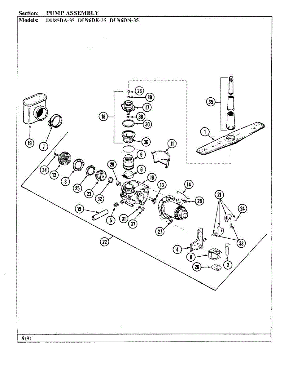 Parts for Magic Chef DU85DA-35: 03 - Pump Assembly Parts