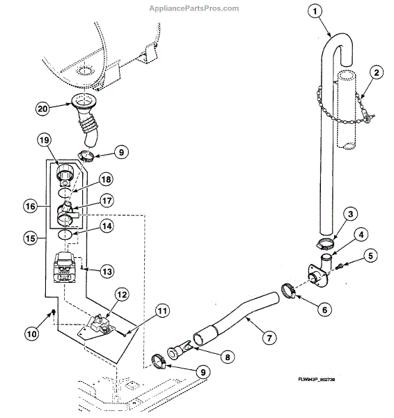 This washer drain pump removes water from the tub during the drain and spin portions of the cycle. Replacing a failing pump restores proper draining and helps prevent standing water, error codes, and extended cycle times.