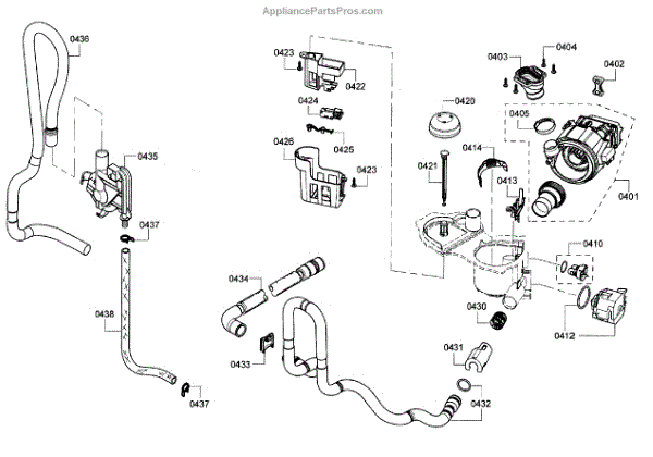The Drain Hose is an OEM component for Bosch dishwashers. It is a flexible plastic tube responsible for removing used wash water from the dishwasher sump to household drain plumbing located outside the appliance. Causes of a bad drain hose include cracks developing along joints from constant bending during drainage or mineral buildup restricting water flow over time. Symptoms of a bad drain hose involve: