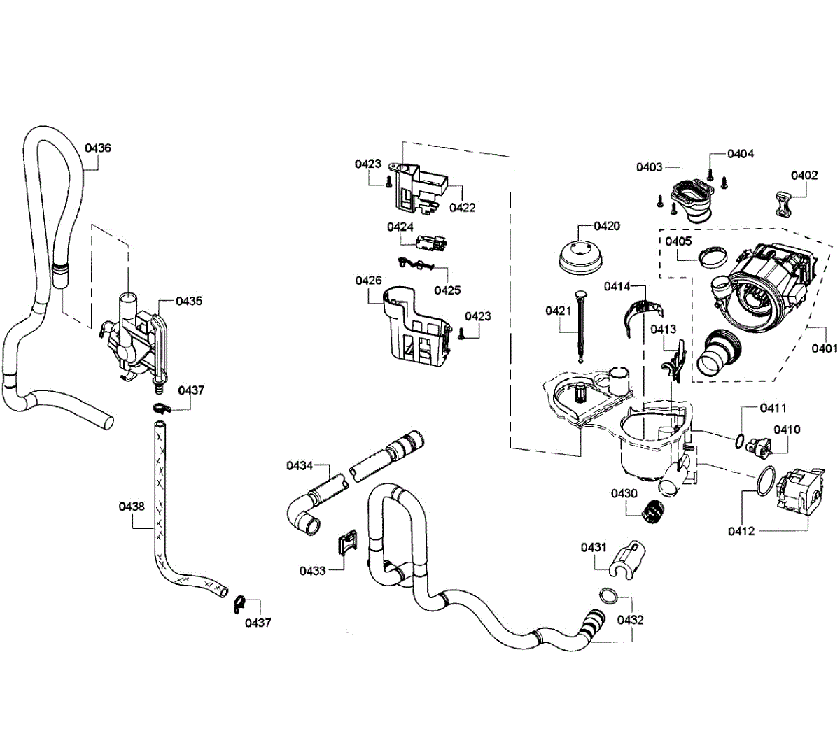 Flexible plastic tube that carries used wash water from the dishwasher sump to household drain plumbing. Replace if cracked, pinched, or leaking.