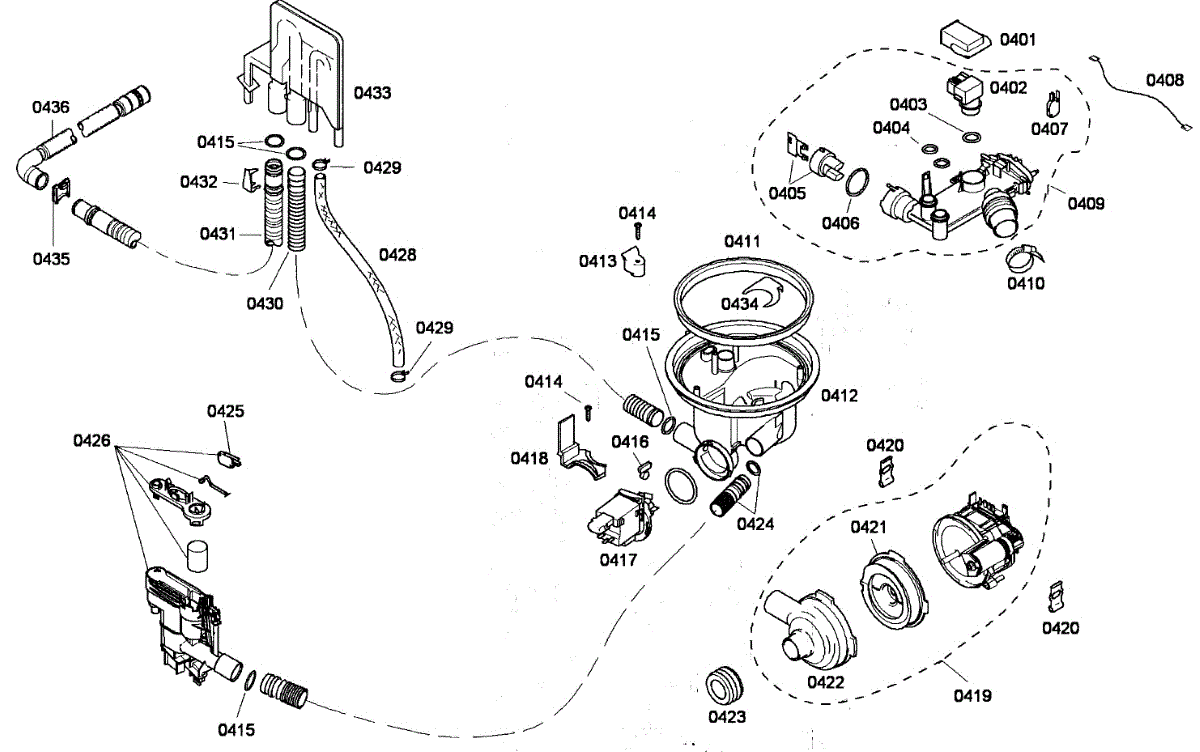 Seals the dishwasher sump to prevent water leaks during wash cycles. Replace if you notice leaking at the base or constant drain pump operation.