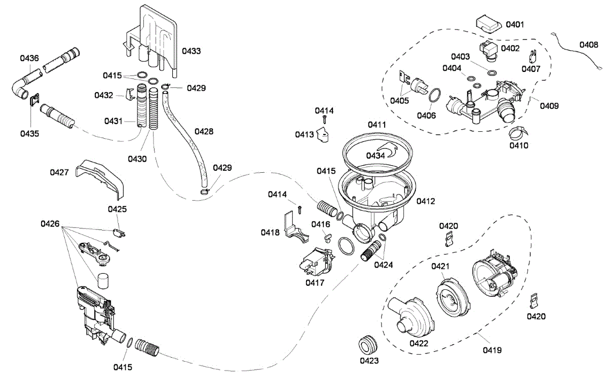 Seals connection between pump and sump to prevent leaks during wash cycles. Replace if water pools under dishwasher or pump noise occurs.