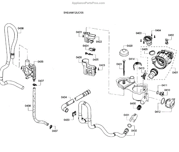 The Drain Hose is an OEM component for Bosch dishwashers. It is a flexible plastic tube responsible for removing used wash water from the dishwasher sump to household drain plumbing located outside the appliance. Causes of a bad drain hose include cracks developing along joints from constant bending during drainage or mineral buildup restricting water flow over time. Symptoms of a bad drain hose involve: