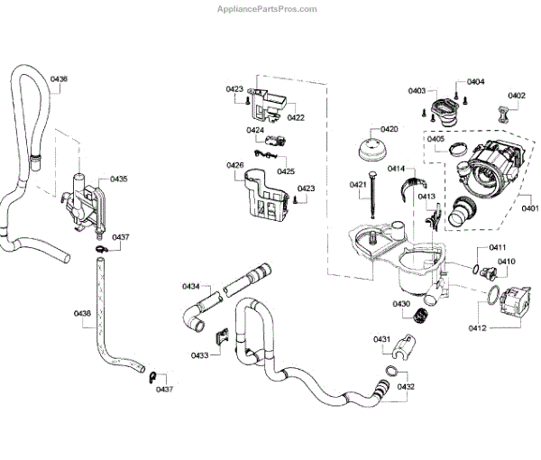 The Drain Hose is an OEM component for Bosch dishwashers. It is a flexible plastic tube responsible for removing used wash water from the dishwasher sump to household drain plumbing located outside the appliance. Causes of a bad drain hose include cracks developing along joints from constant bending during drainage or mineral buildup restricting water flow over time. Symptoms of a bad drain hose involve: