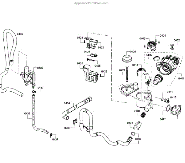The Drain Hose is an OEM component for Bosch dishwashers. It is a flexible plastic tube responsible for removing used wash water from the dishwasher sump to household drain plumbing located outside the appliance.