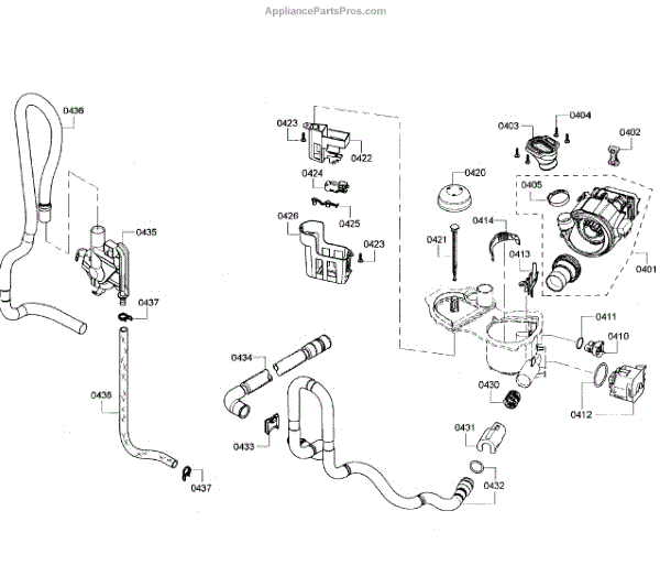 The Drain Hose is an OEM component for Bosch dishwashers. It is a flexible plastic tube responsible for removing used wash water from the dishwasher sump to household drain plumbing located outside the appliance. Causes of a bad drain hose include cracks developing along joints from constant bending during drainage or mineral buildup restricting water flow over time. Symptoms of a bad drain hose involve: