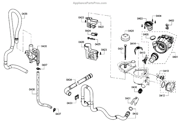 The Drain Hose is an OEM component for Bosch dishwashers. It is a flexible plastic tube responsible for removing used wash water from the dishwasher sump to household drain plumbing located outside the appliance. Causes of a bad drain hose include cracks developing along joints from constant bending during drainage or mineral buildup restricting water flow over time. Symptoms of a bad drain hose involve: