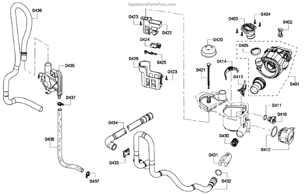 The Drain Hose is an OEM component for Bosch dishwashers. It is a flexible plastic tube responsible for removing used wash water from the dishwasher sump to household drain plumbing located outside the appliance. Causes of a bad drain hose include cracks developing along joints from constant bending during drainage or mineral buildup restricting water flow over time. Symptoms of a bad drain hose involve: