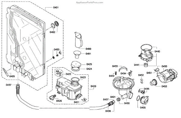 • Channels wash and rinse water to the spray arms and wash assembly