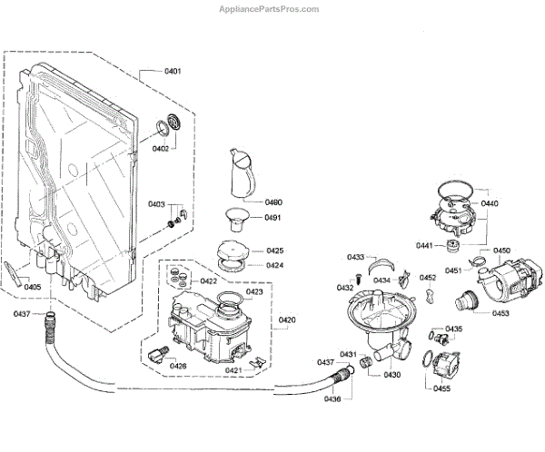 • Channels wash and rinse water to the spray arms and wash assembly