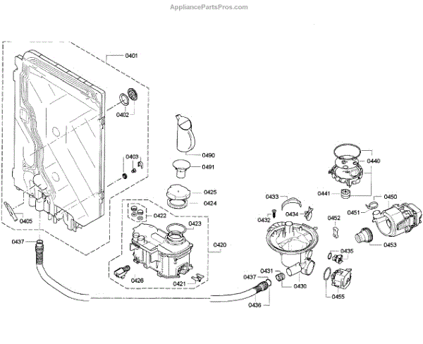 • Channels wash and rinse water to the spray arms and wash assembly