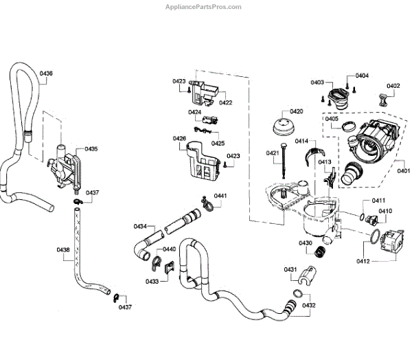 The Drain Hose is an OEM component for Bosch dishwashers. It is a flexible plastic tube responsible for removing used wash water from the dishwasher sump to household drain plumbing located outside the appliance. Causes of a bad drain hose include cracks developing along joints from constant bending during drainage or mineral buildup restricting water flow over time. Symptoms of a bad drain hose involve: