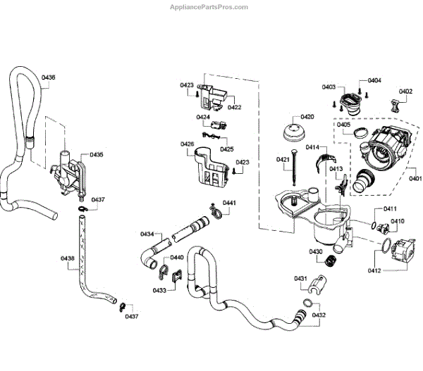 The Drain Hose is an OEM component for Bosch dishwashers. It is a flexible plastic tube responsible for removing used wash water from the dishwasher sump to household drain plumbing located outside the appliance. Causes of a bad drain hose include cracks developing along joints from constant bending during drainage or mineral buildup restricting water flow over time. Symptoms of a bad drain hose involve: