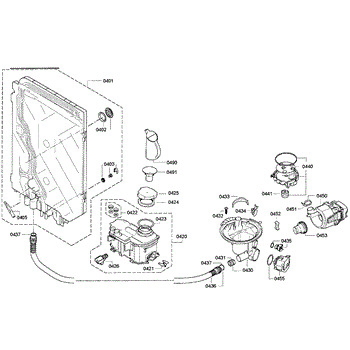 • Channels wash and rinse water to the spray arms and wash assembly