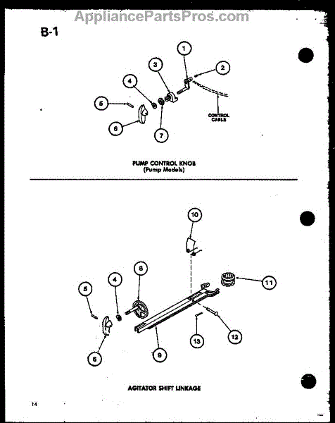 Parts for Amana TWA-200/P75753-1W: Pump Control Knob (Pump Models) / Agitator Shift Linkage Parts