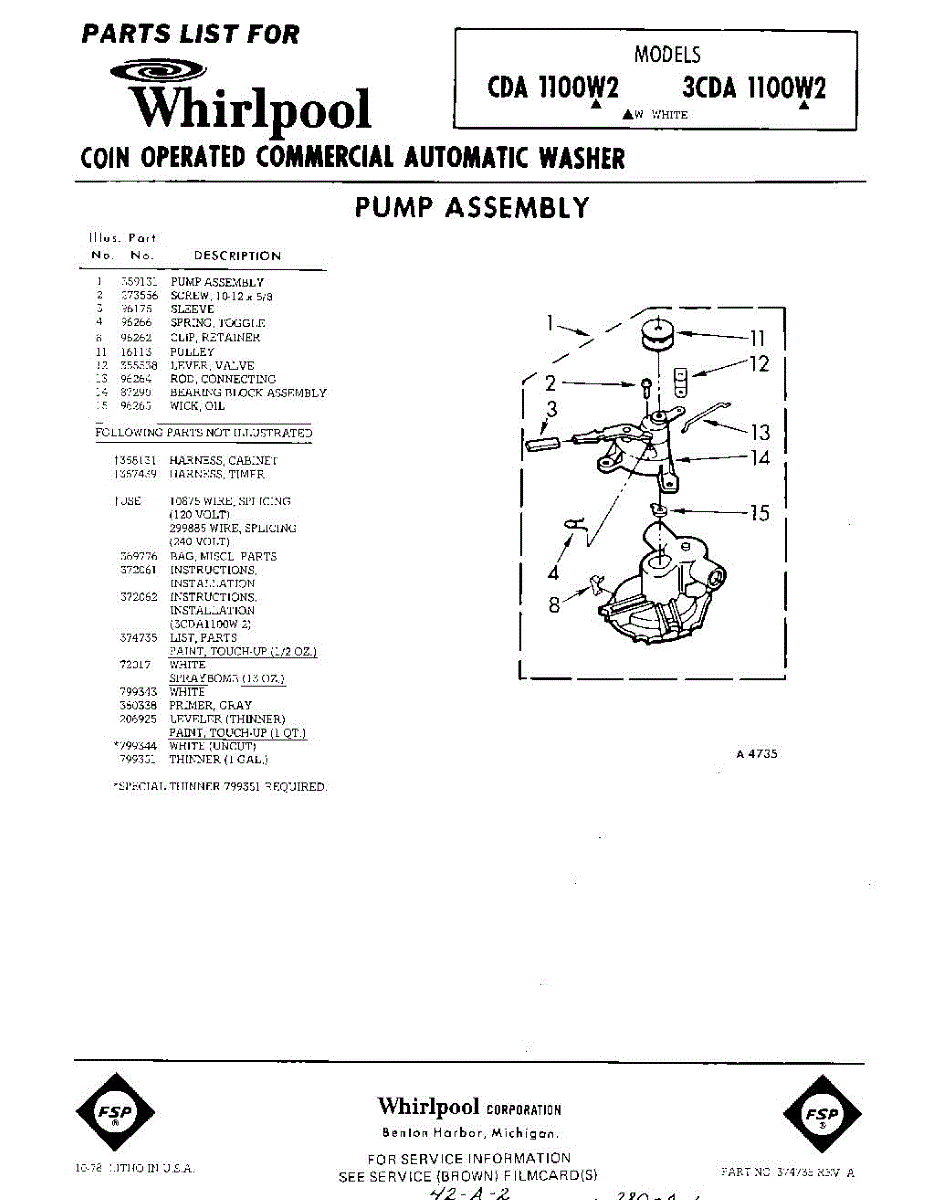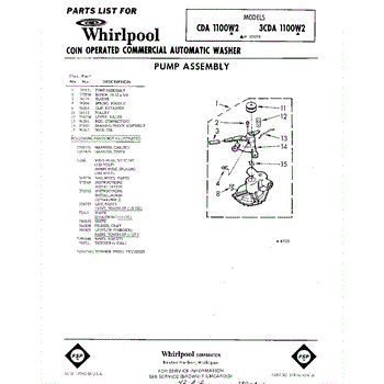 Parts for Whirlpool 3CDA1100W2: 01 - Pump , Lit / Optional Parts