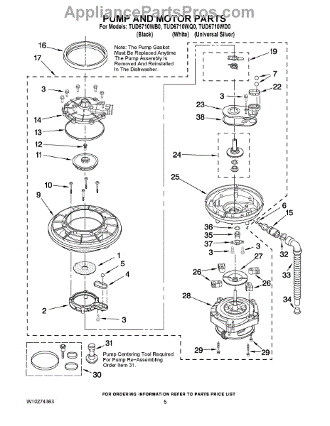 The Drain & Wash Impeller Kit is an OEM part for Whirlpool dishwashers. This kit includes components critical for the efficient movement of water within the dishwasher, both for washing the dishes and draining the water at the end of the cycle. The impeller aids in creating the necessary water pressure to clean dishes effectively and ensures that water is properly expelled from the dishwasher.