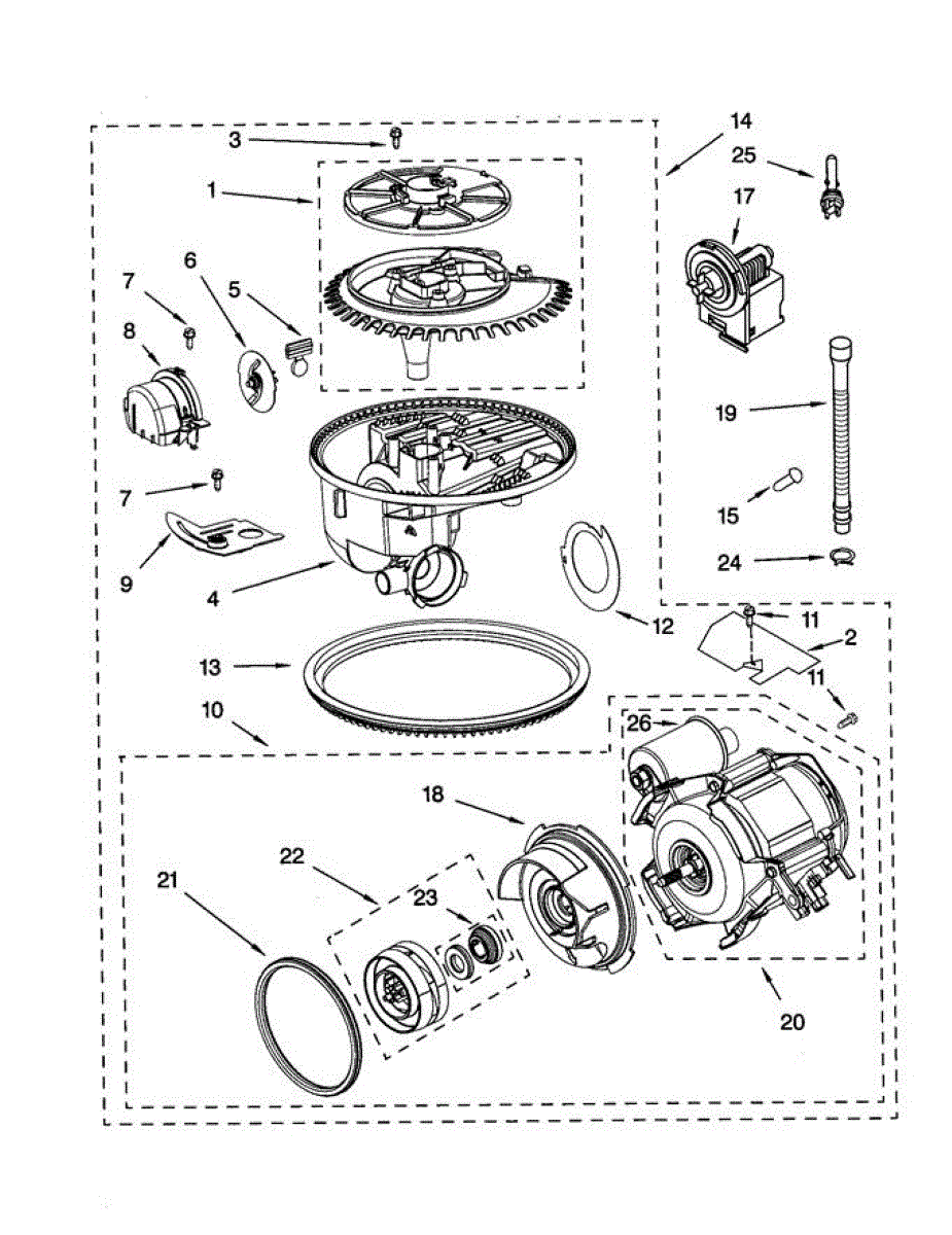 Parts for Kitchenaid KUDR01DTBT0: Pump And Motor Parts
