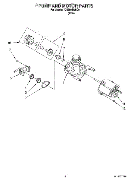 Parts for Whirlpool 7DU850SWSQ0: 05 - Pump And Motor Parts