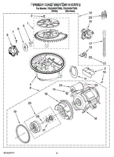 Parts for Whirlpool 7GU2455XTSQ0: 08 - Pump And Motor Parts