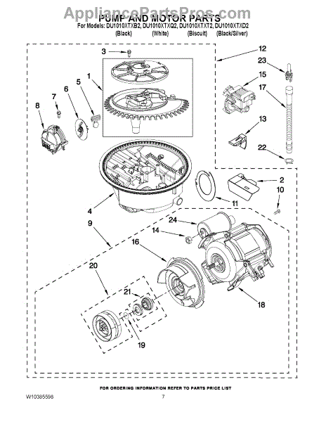 This replacement part is a dishwasher pump and motor assembly. The dishwasher pump and pump motor circulate water through the dishwasher's spray arm. When the spray arms aren't spraying properly, this could mean that it's time for a new pump and motor assembly. Luckily replacing this part is a relatively simple process.Start by making sure the dishwasher is unplugged. After that shut off the water supply going to the dishwasher. Then disconnect the drain line from the garbage disposal or sink drain. Open the dishwasher door and pull out the bottom dish rack. Remove the upper dishrack from its track. Release the spray arm on the bottom of the washer. Then proceed to release the feed tube clips. Using a nut driver remove the bottom access panel and tow panel. Pull them out to remove them. Remove the power cable from the junction box, and disconnect the supply line from the inlet valve. Proceed to pull the dishwasher out of the counter. Tilt the dishwasher on its side and pull the hose from the drain pump. Remove the wire harness from the pump. Disconnect wires from diverter motor and circulation motor. Once complete, proceed to tilt the dishwasher upright and remove the pump and motor assembly from the bottom of the dishwasher. Replace with the new assembly.This replacement part is compatible with Whirlpool, Maytag, KitchenAid, Jenn-Air, Amana, Magic Chef, Admiral, Norge, Roper, and Sears/Kenmore brand dishwashers.