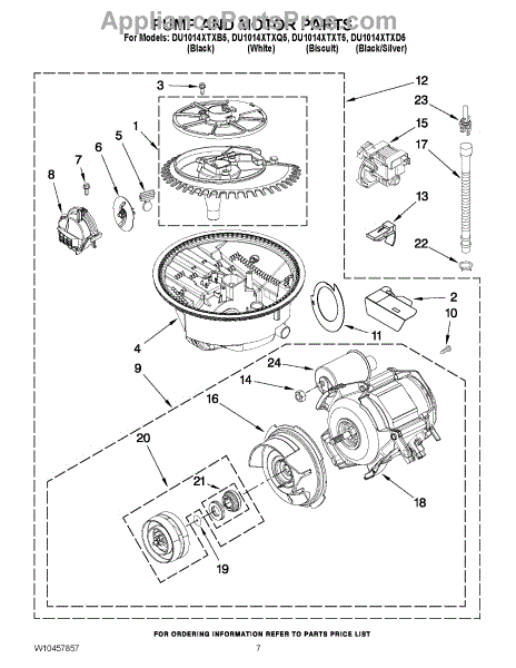 This replacement part is a dishwasher pump and motor assembly. The dishwasher pump and pump motor circulate water through the dishwasher's spray arm. When the spray arms aren't spraying properly, this could mean that it's time for a new pump and motor assembly. Luckily replacing this part is a relatively simple process.Start by making sure the dishwasher is unplugged. After that shut off the water supply going to the dishwasher. Then disconnect the drain line from the garbage disposal or sink drain. Open the dishwasher door and pull out the bottom dish rack. Remove the upper dishrack from its track. Release the spray arm on the bottom of the washer. Then proceed to release the feed tube clips. Using a nut driver remove the bottom access panel and tow panel. Pull them out to remove them. Remove the power cable from the junction box, and disconnect the supply line from the inlet valve. Proceed to pull the dishwasher out of the counter. Tilt the dishwasher on its side and pull the hose from the drain pump. Remove the wire harness from the pump. Disconnect wires from diverter motor and circulation motor. Once complete, proceed to tilt the dishwasher upright and remove the pump and motor assembly from the bottom of the dishwasher. Replace with the new assembly.This replacement part is compatible with Whirlpool, Maytag, KitchenAid, Jenn-Air, Amana, Magic Chef, Admiral, Norge, Roper, and Sears/Kenmore brand dishwashers.