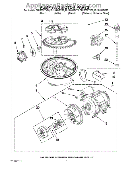 This replacement part is a dishwasher pump and motor assembly. The dishwasher pump and pump motor circulate water through the dishwasher's spray arm. When the spray arms aren't spraying properly, this could mean that it's time for a new pump and motor assembly. Luckily replacing this part is a relatively simple process.Start by making sure the dishwasher is unplugged. After that shut off the water supply going to the dishwasher. Then disconnect the drain line from the garbage disposal or sink drain. Open the dishwasher door and pull out the bottom dish rack. Remove the upper dishrack from its track. Release the spray arm on the bottom of the washer. Then proceed to release the feed tube clips. Using a nut driver remove the bottom access panel and tow panel. Pull them out to remove them. Remove the power cable from the junction box, and disconnect the supply line from the inlet valve. Proceed to pull the dishwasher out of the counter. Tilt the dishwasher on its side and pull the hose from the drain pump. Remove the wire harness from the pump. Disconnect wires from diverter motor and circulation motor. Once complete, proceed to tilt the dishwasher upright and remove the pump and motor assembly from the bottom of the dishwasher. Replace with the new assembly.This replacement part is compatible with Whirlpool, Maytag, KitchenAid, Jenn-Air, Amana, Magic Chef, Admiral, Norge, Roper, and Sears/Kenmore brand dishwashers.
