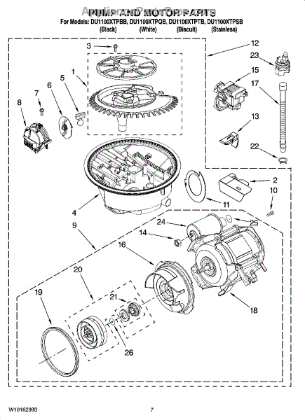 Parts for Whirlpool DU1100XTPSB: 06 - Pump And Motor Parts