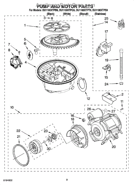 Parts for Whirlpool DU1100XTPT9: 08 - Pump And Motor Parts