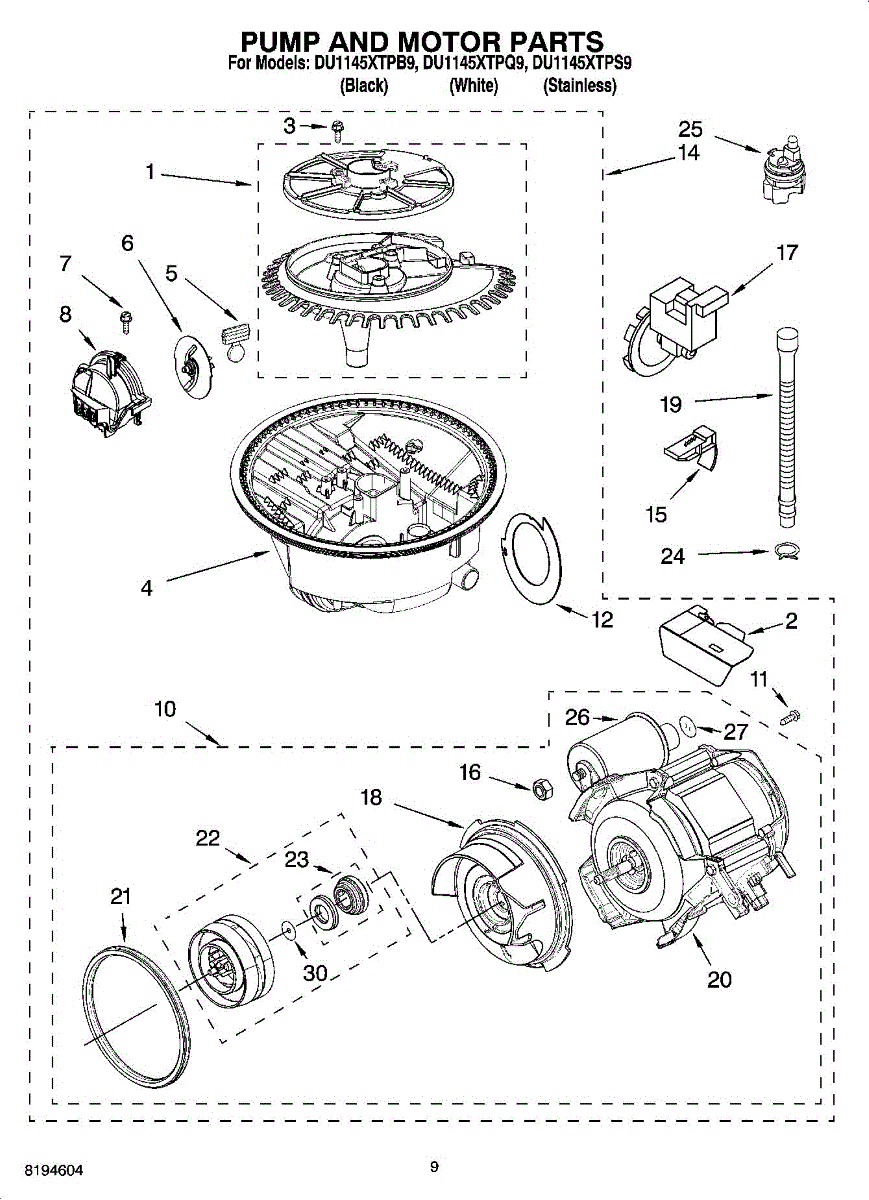 Parts for Whirlpool DU1145XTPS9: 08 - Pump And Motor Parts