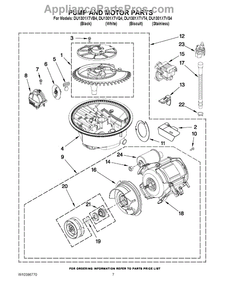 This replacement part is a dishwasher pump and motor assembly. The dishwasher pump and pump motor circulate water through the dishwasher's spray arm. When the spray arms aren't spraying properly, this could mean that it's time for a new pump and motor assembly. Luckily replacing this part is a relatively simple process.Start by making sure the dishwasher is unplugged. After that shut off the water supply going to the dishwasher. Then disconnect the drain line from the garbage disposal or sink drain. Open the dishwasher door and pull out the bottom dish rack. Remove the upper dishrack from its track. Release the spray arm on the bottom of the washer. Then proceed to release the feed tube clips. Using a nut driver remove the bottom access panel and tow panel. Pull them out to remove them. Remove the power cable from the junction box, and disconnect the supply line from the inlet valve. Proceed to pull the dishwasher out of the counter. Tilt the dishwasher on its side and pull the hose from the drain pump. Remove the wire harness from the pump. Disconnect wires from diverter motor and circulation motor. Once complete, proceed to tilt the dishwasher upright and remove the pump and motor assembly from the bottom of the dishwasher. Replace with the new assembly.This replacement part is compatible with Whirlpool, Maytag, KitchenAid, Jenn-Air, Amana, Magic Chef, Admiral, Norge, Roper, and Sears/Kenmore brand dishwashers.