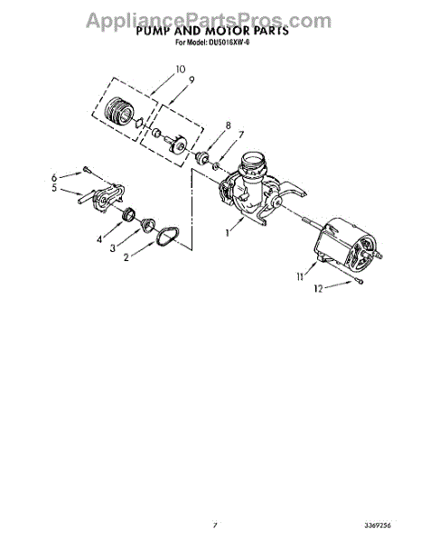 Parts for Whirlpool DU5016XW0: 05 - Pump And Motor Parts