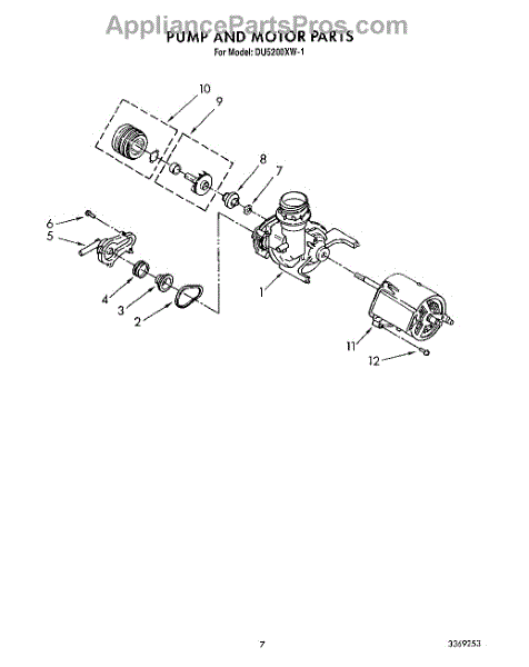 Parts for Whirlpool DU5200XW1: 05 - Pump And Motor Parts