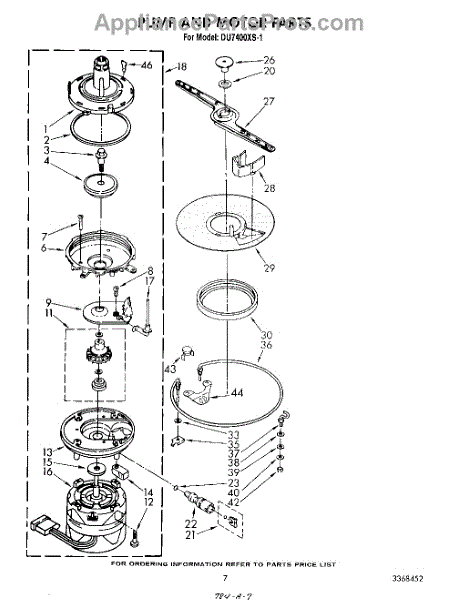 Parts for Whirlpool DU7400XS1: 05 - Pump And Motor Parts