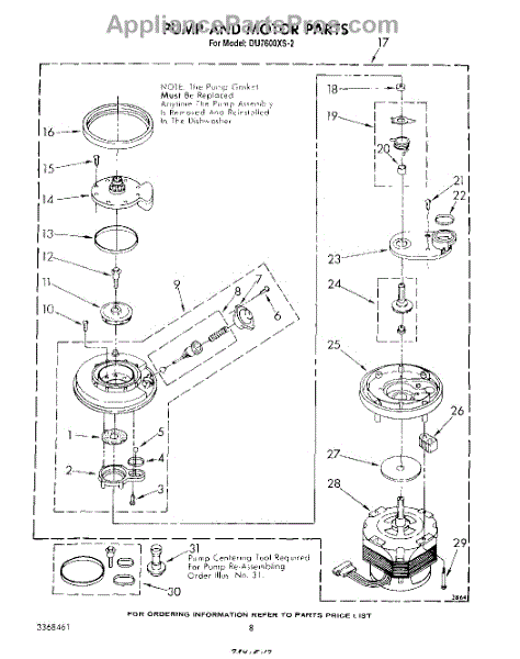 Parts for Whirlpool DU7600XS2: 06 - Pump And Motor Parts