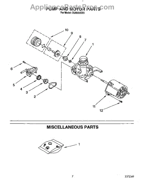 Parts for Whirlpool DU8000XX5: 06 - Pump And Motor, Miscellaneous Parts