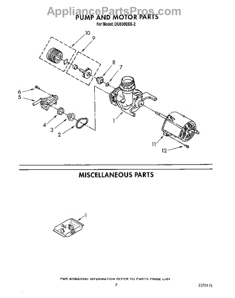 Parts for Whirlpool DU8300XX2: 06 - Pump And Motor, Miscellaneous Parts