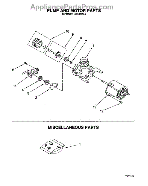 Parts for Whirlpool DU8300XX4: 06 - Pump And Motor, Miscellaneous Parts