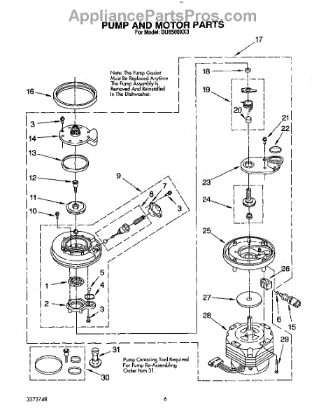 Parts for Whirlpool DU8500XX3: 05 - Pump And Motor Parts