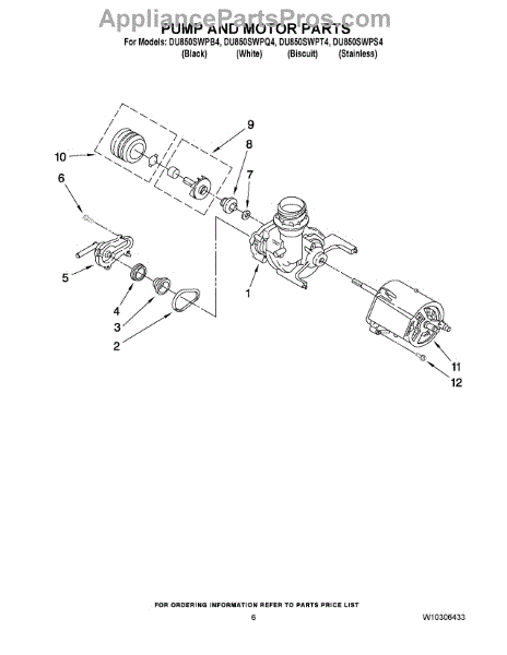 Parts for Whirlpool DU850SWPB4: 05 - Pump And Motor Parts