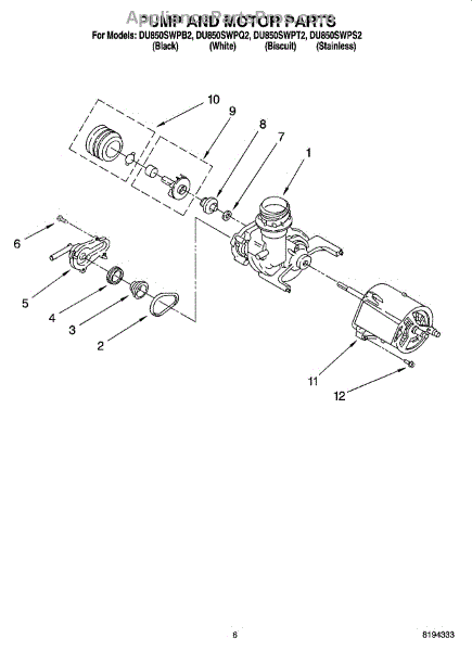 Parts for Whirlpool DU850SWPT2: 05 - Pump And Motor Parts
