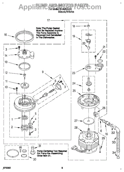Symptoms of a failing Drain & Wash Impeller Kit include: