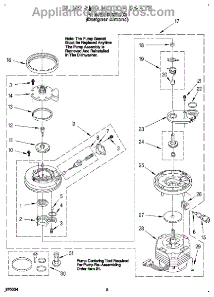 This pump outlet seal sits on the discharge side of the dishwasher pump to keep the outlet connection watertight. Replacing a worn seal helps stop leaks and keeps wash water contained during the cycle. What it does: