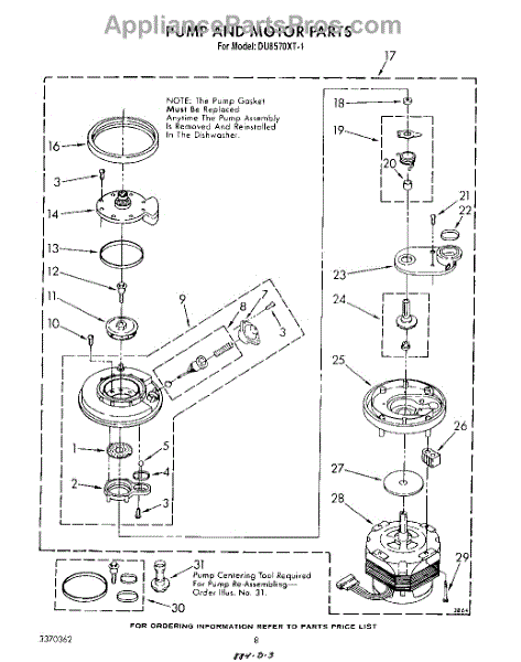 Kit includes rubber rings, impeller screw with seal and fiber gasket.